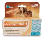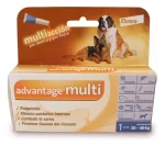 La aplicación mensual de Advantage Multi contra pulgas, gusano del corazón y parasitos intestinales, protege a gatos y perros de enfermedades causadas por estos parásitos. Advantage Multi es un tratamiento spot-on, fácil de utilizar, que se aplica una vez al mes para ayudar a que tu mascota se deshaga de los parásitos que ya la invadieron y para darle protección continua. Los poderosos ingredientes de Advantage Multi alivian con rapidez las infestaciones de pulgas, previenen infecciones del mortífero gusano del corazón y protegen a tu mascota y a tu familia contra los nematodos intestinales más comunes, entre ellos los gusanos redondos y las ancylostomas.